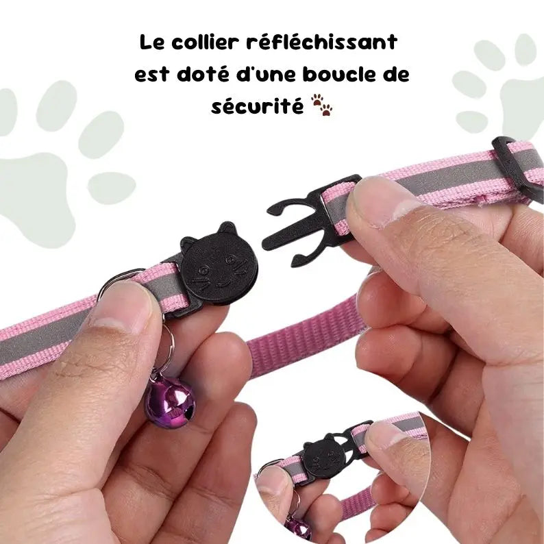 Nylon réfléchissant + petite cloche pour repérer votre compagnon, même dans le noir.